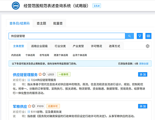 | 上海注冊(cè)供應(yīng)鏈管理公司經(jīng)營范圍怎么寫 供應(yīng)鏈管理公司經(jīng)營范圍參考:一般項(xiàng)目:供應(yīng)鏈管理服務(wù);國內(nèi)貨物運(yùn)輸代理;普通貨物倉儲(chǔ)服務(wù)(不含危險(xiǎn)化學(xué)品等需許可審批的項(xiàng)目);信息咨詢服務(wù)(不含許可類信息咨詢服務(wù));技術(shù)服務(wù)、技術(shù)開發(fā)、技術(shù)咨詢、技術(shù)交流、技術(shù)轉(zhuǎn)讓、技術(shù)推廣。(除依法須經(jīng)批準(zhǔn)的項(xiàng)目外,憑營業(yè)執(zhí)照依法自主開展經(jīng)營活動(dòng))許可項(xiàng)目:道路貨物運(yùn)輸(不含危險(xiǎn)貨物)。(依法須經(jīng)批準(zhǔn)的項(xiàng)目,經(jīng)相關(guān)部門批準(zhǔn)后方可開展經(jīng)營活動(dòng),具體經(jīng)營項(xiàng)目以相關(guān)部門批準(zhǔn)文件或許可證件為準(zhǔn)) 供應(yīng)鏈管理公司經(jīng)營范圍參考:一般項(xiàng)目:供應(yīng)鏈管理服務(wù);互聯(lián)網(wǎng)銷售(除銷售需要許可的商品);會(huì)議及展覽服務(wù);信息咨詢服務(wù)(不含許可類信息咨詢服務(wù));專用化學(xué)產(chǎn)品銷售(不含危險(xiǎn)化學(xué)品);塑料制品銷售;金屬材料銷售;金屬礦石銷售;有色金屬合金銷售;建筑材料銷售;針紡織品及原料銷售;潤(rùn)滑油銷售;石油制品銷售(不含危險(xiǎn)化學(xué)品);煤炭及制品銷售;計(jì)算機(jī)軟硬件及輔助設(shè)備批發(fā);物聯(lián)網(wǎng)技術(shù)研發(fā);軟件開發(fā);技術(shù)服務(wù)、技術(shù)開發(fā)、技術(shù)咨詢、技術(shù)交流、技術(shù)轉(zhuǎn)讓、技術(shù)推廣;信息技術(shù)咨詢服務(wù);科技中介服務(wù);信息系統(tǒng)集成服務(wù);數(shù)據(jù)處理服務(wù);國際貨物運(yùn)輸代理;國內(nèi)貨物運(yùn)輸代理;紙制品銷售;貨物進(jìn)出口;技術(shù)進(jìn)出口。(除依法須經(jīng)批準(zhǔn)的項(xiàng)目外,憑營業(yè)執(zhí)照依法自主開展經(jīng)營活動(dòng)) 供應(yīng)鏈管理公司經(jīng)營范圍參考:許可項(xiàng)目:食品銷售;酒類經(jīng)營;煙草制品零售;建設(shè)工程施工;建設(shè)工程設(shè)計(jì)。(依法須經(jīng)批準(zhǔn)的項(xiàng)目,經(jīng)相關(guān)部門批準(zhǔn)后方可開展經(jīng)營活動(dòng),具體經(jīng)營項(xiàng)目以相關(guān)部門批準(zhǔn)文件或許可證件為準(zhǔn)) 一般項(xiàng)目:供應(yīng)鏈管理服務(wù);貨物進(jìn)出口;食用農(nóng)產(chǎn)品批發(fā);日用陶瓷制品銷售;工藝美術(shù)品及禮儀用品銷售(象牙及其制品除外);金屬材料銷售;技術(shù)服務(wù)、技術(shù)開發(fā)、技術(shù)咨詢、技術(shù)交流、技術(shù)轉(zhuǎn)讓、技術(shù)推廣;市場(chǎng)營銷策劃;軟件開發(fā);信息咨詢服務(wù)(不含許可類信息咨詢服務(wù))。(除依法須經(jīng)批準(zhǔn)的項(xiàng)目外,憑營業(yè)執(zhí)照依法自主開展經(jīng)營活動(dòng)) 供應(yīng)鏈管理公司經(jīng)營范圍參考:一般項(xiàng)目:供應(yīng)鏈管理服務(wù);國際貨物運(yùn)輸代理;國內(nèi)貨物運(yùn)輸代理;技術(shù)服務(wù)、技術(shù)開發(fā)、技術(shù)咨詢、技術(shù)交流、技術(shù)轉(zhuǎn)讓、技術(shù)推廣;信息系統(tǒng)集成服務(wù);信息技術(shù)咨詢服務(wù);信息咨詢服務(wù)(不含許可類信息咨詢服務(wù));食用農(nóng)產(chǎn)品初加工【分支機(jī)構(gòu)經(jīng)營】;非食用農(nóng)產(chǎn)品初加工【分支機(jī)構(gòu)經(jīng)營】;初級(jí)農(nóng)產(chǎn)品收購;食用農(nóng)產(chǎn)品批發(fā);食用農(nóng)產(chǎn)品零售;數(shù)據(jù)處理和存儲(chǔ)支持服務(wù);大數(shù)據(jù)服務(wù);工業(yè)互聯(lián)網(wǎng)數(shù)據(jù)服務(wù);數(shù)據(jù)處理服務(wù);信息系統(tǒng)運(yùn)行維護(hù)服務(wù);軟件開發(fā)。(除依法須經(jīng)批準(zhǔn)的項(xiàng)目外,憑營業(yè)執(zhí)照依法自主開展經(jīng)營活動(dòng))許可項(xiàng)目:城市配送運(yùn)輸服務(wù)(不含危險(xiǎn)貨物);道路貨物運(yùn)輸(不含危險(xiǎn)貨物);互聯(lián)網(wǎng)信息服務(wù);農(nóng)產(chǎn)品質(zhì)量安全檢測(cè)。(依法須經(jīng)批準(zhǔn)的項(xiàng)目,經(jīng)相關(guān)部門批準(zhǔn)后方可開展經(jīng)營活動(dòng),具體經(jīng)營項(xiàng)目以相關(guān)部門批準(zhǔn)文件或許可證件為準(zhǔn)) 供應(yīng)鏈管理公司經(jīng)營范圍參考:許可項(xiàng)目:檢驗(yàn)檢測(cè)服務(wù);醫(yī)療器械互聯(lián)網(wǎng)信息服務(wù);消毒器械銷售;第三類醫(yī)療器械經(jīng)營。(依法須經(jīng)批準(zhǔn)的項(xiàng)目,經(jīng)相關(guān)部門批準(zhǔn)后方可開展經(jīng)營活動(dòng),具體經(jīng)營項(xiàng)目以相關(guān)部門批準(zhǔn)文件或許可證件為準(zhǔn)) 一般項(xiàng)目:供應(yīng)鏈管理服務(wù);醫(yī)院管理;專用設(shè)備修理;消毒劑銷售(不含危險(xiǎn)化學(xué)品);專業(yè)保潔、清洗、消毒服務(wù);專用化學(xué)產(chǎn)品制造(不含危險(xiǎn)化學(xué)品);細(xì)胞技術(shù)研發(fā)和應(yīng)用;健康咨詢服務(wù)(不含診療服務(wù));技術(shù)服務(wù)、技術(shù)開發(fā)、技術(shù)咨詢、技術(shù)交流、技術(shù)轉(zhuǎn)讓、技術(shù)推廣;遠(yuǎn)程健康管理服務(wù);日用化學(xué)產(chǎn)品銷售;專用化學(xué)產(chǎn)品銷售(不含危險(xiǎn)化學(xué)品);人工智能行