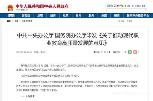 新華社北京10月12日電 近日,中共中央辦公廳、國務(wù)院辦公廳印發(fā)了《關(guān)于推動(dòng)現(xiàn)代職業(yè)教育高質(zhì)量發(fā)展的意見》,并發(fā)出通知,要求各地區(qū)各部門結(jié)合實(shí)際認(rèn)真貫徹落實(shí)。 《關(guān)于推動(dòng)現(xiàn)代職業(yè)教育高質(zhì)量發(fā)展的意見》主要內(nèi)容如下。 職業(yè)教育是國民教育體系和人力資源開發(fā)的重要組成部分,肩負(fù)著培養(yǎng)多樣化人才、傳承技術(shù)技能、促進(jìn)就業(yè)創(chuàng)業(yè)的重要職責(zé)。在全面建設(shè)社會(huì)主義現(xiàn)代化國家新征程中,職業(yè)教育前途廣闊、大有可為。為貫徹落實(shí)全國職業(yè)教育大會(huì)精神,推動(dòng)現(xiàn)代職業(yè)教育高質(zhì)量發(fā)展,現(xiàn)提出如下意見。 一、總體要求 (一)指導(dǎo)思想。以習(xí)近平新時(shí)代中國特色社會(huì)主義思想為指導(dǎo),深入貫徹黨的十九大和十九屆二中、三中、四中、五中全會(huì)精神,堅(jiān)持黨的領(lǐng)導(dǎo),堅(jiān)持正確辦學(xué)方向,堅(jiān)持立德樹人,優(yōu)化類型定位,深入推進(jìn)育人方式、辦學(xué)模式、管理體制、保障機(jī)制改革,切實(shí)增強(qiáng)職業(yè)教育適應(yīng)性,加快構(gòu)建現(xiàn)代職業(yè)教育體系,建設(shè)技能型社會(huì),弘揚(yáng)工匠精神,培養(yǎng)更多高素質(zhì)技術(shù)技能人才、能工巧匠、大國工匠,為全面建設(shè)社會(huì)主義現(xiàn)代化國家提供有力人才和技能支撐。 (二)工作要求。堅(jiān)持立德樹人、德技并修,推動(dòng)思想政治教育與技術(shù)技能培養(yǎng)融合統(tǒng)一;堅(jiān)持產(chǎn)教融合、校企合作,推動(dòng)形成產(chǎn)教良性互動(dòng)、校企優(yōu)勢互補(bǔ)的發(fā)展格局;堅(jiān)持面向市場、促進(jìn)就業(yè),推動(dòng)學(xué)校布局、專業(yè)設(shè)置、人才培養(yǎng)與市場需求相對(duì)接;堅(jiān)持面向?qū)嵺`、強(qiáng)化能力,讓更多青年憑借一技之長實(shí)現(xiàn)人生價(jià)值;堅(jiān)持面向人人、因材施教,營造人人努力成才、人人皆可成才、人人盡展其才的良好環(huán)境。 (三)主要目標(biāo) 到2025年,職業(yè)教育類型特色更加鮮明,現(xiàn)代職業(yè)教育體系基本建成,技能型社會(huì)建設(shè)全面推進(jìn)。辦學(xué)格局更加優(yōu)化,辦學(xué)條件大幅改善,職業(yè)本科教育招生規(guī)模不低于高等職業(yè)教育招生規(guī)模的10%,職業(yè)教育吸引力和培養(yǎng)質(zhì)量顯著提高。 到2035年,職業(yè)教育整體水平進(jìn)入世界前列,技能型社會(huì)基本建成。技術(shù)技能人才社會(huì)地位大幅提升,職業(yè)教育供給與經(jīng)濟(jì)社會(huì)發(fā)展需求高度匹配,在全面建設(shè)社會(huì)主義現(xiàn)代化國家中的作用顯著增強(qiáng)。 二、強(qiáng)化職業(yè)教育類型特色 (四)鞏固職業(yè)教育類型定位。因地制宜、統(tǒng)籌推進(jìn)職業(yè)教育與普通教育協(xié)調(diào)發(fā)展。加快建立“職教高考”制度,完善“文化素質(zhì)+職業(yè)技能”考試招生辦法,加強(qiáng)省級(jí)統(tǒng)籌,確保公平公正。加強(qiáng)職業(yè)教育理論研究,及時(shí)總結(jié)中國特色職業(yè)教育辦學(xué)規(guī)律和制度模式。 (五)推進(jìn)不同層次職業(yè)教育縱向貫通。大力提升中等職業(yè)教育辦學(xué)質(zhì)量,優(yōu)化布局結(jié)構(gòu),實(shí)施中等職業(yè)學(xué)校辦學(xué)條件達(dá)標(biāo)工程,采取合并、合作、托管、集團(tuán)辦學(xué)等措施,建設(shè)一批優(yōu)秀中等職業(yè)學(xué)校和優(yōu)質(zhì)專業(yè),注重為高等職業(yè)教育輸送具有扎實(shí)技術(shù)技能基礎(chǔ)和合格文化基礎(chǔ)的生源。支持有條件的中等職業(yè)學(xué)校根據(jù)當(dāng)?shù)亟?jīng)濟(jì)社會(huì)發(fā)展需要試辦社區(qū)學(xué)院。推進(jìn)高等職業(yè)教育提質(zhì)培優(yōu),實(shí)施好“雙高計(jì)劃”,集中力量建設(shè)一批高水平高等職業(yè)學(xué)校和專業(yè)。穩(wěn)步發(fā)展職業(yè)本科教育,高標(biāo)準(zhǔn)建設(shè)職業(yè)本科學(xué)校和專業(yè),保持職業(yè)教育辦學(xué)方向不變、培養(yǎng)模式不變、特色發(fā)展不變。一體化設(shè)計(jì)職業(yè)教育人才培養(yǎng)體系,推動(dòng)各層次職業(yè)教育專業(yè)設(shè)置、培養(yǎng)目標(biāo)、課程體系、培養(yǎng)方案銜接,支持在培養(yǎng)周期長、技能要求高的專業(yè)領(lǐng)域?qū)嵤╅L學(xué)制培養(yǎng)。鼓勵(lì)應(yīng)用型本科學(xué)校開展職業(yè)本科教育。按照專業(yè)大致對(duì)口原則,指導(dǎo)應(yīng)用型本科學(xué)校、職業(yè)本科學(xué)校吸引更多中高職畢業(yè)生報(bào)考。 (六)促進(jìn)不同類型教育橫向融通。加強(qiáng)各學(xué)段普通教育與職業(yè)教育滲透融通,在普通中小學(xué)實(shí)施職業(yè)啟蒙教育,培養(yǎng)掌握技能的興趣愛好和職業(yè)生涯規(guī)劃的意識(shí)能力。探索發(fā)展以專項(xiàng)技能培養(yǎng)為主的特色綜合高中。推動(dòng)中等職業(yè)學(xué)校與普通高中、高等職業(yè)學(xué)校與應(yīng)用型大學(xué)課程互選、學(xué)分互認(rèn)。鼓勵(lì)職業(yè)學(xué)校開展補(bǔ)貼性培訓(xùn)和市場化社會(huì)培訓(x