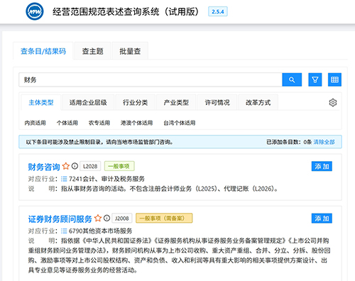 財(cái)務(wù)咨詢(xún)公司營(yíng)業(yè)執(zhí)照經(jīng)營(yíng)范圍怎么填寫(xiě) 財(cái)務(wù)咨詢(xún)公司營(yíng)業(yè)執(zhí)照經(jīng)營(yíng)范圍參考:一般項(xiàng)目:財(cái)務(wù)咨詢(xún);企業(yè)管理咨詢(xún);信息咨詢(xún)服務(wù)(不含許可類(lèi)信息咨詢(xún)服務(wù));社會(huì)經(jīng)濟(jì)咨詢(xún)服務(wù);計(jì)算機(jī)系統(tǒng)服務(wù);信息系統(tǒng)集成服務(wù);大數(shù)據(jù)服務(wù);數(shù)據(jù)處理服務(wù);數(shù)據(jù)處理和存儲(chǔ)支持服務(wù);會(huì)議及展覽服務(wù)。(除依法須經(jīng)批準(zhǔn)的項(xiàng)目外,憑營(yíng)業(yè)執(zhí)照依法自主開(kāi)展經(jīng)營(yíng)活動(dòng)) 財(cái)務(wù)咨詢(xún)公司營(yíng)業(yè)執(zhí)照經(jīng)營(yíng)范圍參考:許可項(xiàng)目:代理記賬(依法須經(jīng)批準(zhǔn)的項(xiàng)目,經(jīng)相關(guān)部門(mén)批準(zhǔn)后方可開(kāi)展經(jīng)營(yíng)活動(dòng),具體經(jīng)營(yíng)項(xiàng)目以相關(guān)部門(mén)批準(zhǔn)文件或許可證件為準(zhǔn))一般項(xiàng)目:財(cái)務(wù)咨詢(xún);企業(yè)管理咨詢(xún);企業(yè)管理;會(huì)議及展覽服務(wù);信息咨詢(xún)服務(wù)(不含許可類(lèi)信息咨詢(xún)服務(wù));市場(chǎng)營(yíng)銷(xiāo)策劃;從事智能技術(shù)、信息技術(shù)領(lǐng)域內(nèi)的技術(shù)開(kāi)發(fā)、技術(shù)咨詢(xún)、技術(shù)服務(wù)、技術(shù)轉(zhuǎn)讓、技術(shù)交流、技術(shù)推廣(除依法須經(jīng)批準(zhǔn)的項(xiàng)目外,憑營(yíng)業(yè)執(zhí)照依法自主開(kāi)展經(jīng)營(yíng)活動(dòng))。 財(cái)務(wù)咨詢(xún)公司營(yíng)業(yè)執(zhí)照經(jīng)營(yíng)范圍參考:一般項(xiàng)目:財(cái)務(wù)咨詢(xún);市場(chǎng)營(yíng)銷(xiāo)策劃;信息咨詢(xún)服務(wù)(不含許可類(lèi)信息咨詢(xún)服務(wù));商務(wù)代理代辦服務(wù);企業(yè)形象策劃;企業(yè)管理咨詢(xún);信息系統(tǒng)集成服務(wù);技術(shù)服務(wù)、技術(shù)開(kāi)發(fā)、技術(shù)咨詢(xún)、技術(shù)交流、技術(shù)轉(zhuǎn)讓、技術(shù)推廣;法律咨詢(xún)(不包括律師事務(wù)所業(yè)務(wù));稅務(wù)服務(wù);組織文化藝術(shù)交流活動(dòng);知識(shí)產(chǎn)權(quán)服務(wù)(專(zhuān)利代理服務(wù)除外);社會(huì)經(jīng)濟(jì)咨詢(xún)服務(wù);商標(biāo)代理;會(huì)議及展覽服務(wù);項(xiàng)目策劃與公關(guān)服務(wù);互聯(lián)網(wǎng)銷(xiāo)售(除銷(xiāo)售需要許可的商品);廣告設(shè)計(jì)、代理;廣告制作;市場(chǎng)調(diào)查(不得從事社會(huì)調(diào)查、社會(huì)調(diào)研、民意調(diào)查、民意測(cè)驗(yàn));企業(yè)管理。(除依法須經(jīng)批準(zhǔn)的項(xiàng)目外,憑營(yíng)業(yè)執(zhí)照依法自主開(kāi)展經(jīng)營(yíng)活動(dòng))許可項(xiàng)目:貨物進(jìn)出口;技術(shù)進(jìn)出口。(依法須經(jīng)批準(zhǔn)的項(xiàng)目,經(jīng)相關(guān)部門(mén)批準(zhǔn)后方可開(kāi)展經(jīng)營(yíng)活動(dòng),具體經(jīng)營(yíng)項(xiàng)目以相關(guān)部門(mén)批準(zhǔn)文件或許可證件為準(zhǔn)) 財(cái)務(wù)咨詢(xún)公司營(yíng)業(yè)執(zhí)照經(jīng)營(yíng)范圍參考:許可項(xiàng)目:代理記賬(依法須經(jīng)批準(zhǔn)的項(xiàng)目,經(jīng)相關(guān)部門(mén)批準(zhǔn)后方可開(kāi)展經(jīng)營(yíng)活動(dòng),具體經(jīng)營(yíng)項(xiàng)目以相關(guān)部門(mén)批準(zhǔn)文件或許可證件為準(zhǔn))一般項(xiàng)目:財(cái)務(wù)咨詢(xún);市場(chǎng)主體登記注冊(cè)代理;企業(yè)管理咨詢(xún);信息咨詢(xún)服務(wù)(不含許可類(lèi)信息咨詢(xún)服務(wù));市場(chǎng)營(yíng)銷(xiāo)策劃;會(huì)議及展覽服務(wù);禮儀服務(wù)(除依法須經(jīng)批準(zhǔn)的項(xiàng)目外,憑營(yíng)業(yè)執(zhí)照依法自主開(kāi)展經(jīng)營(yíng)活動(dòng))。 財(cái)務(wù)咨詢(xún)公司營(yíng)業(yè)執(zhí)照經(jīng)營(yíng)范圍參考:一般項(xiàng)目:財(cái)務(wù)咨詢(xún);企業(yè)管理咨詢(xún);個(gè)人商務(wù)服務(wù);信息咨詢(xún)服務(wù)(不含許可類(lèi)信息咨詢(xún)服務(wù))。(除依法須經(jīng)批準(zhǔn)的項(xiàng)目外,憑營(yíng)業(yè)執(zhí)照依法自主開(kāi)展經(jīng)營(yíng)活動(dòng)) 財(cái)務(wù)咨詢(xún)公司營(yíng)業(yè)執(zhí)照經(jīng)營(yíng)范圍參考:許可項(xiàng)目:代理記賬;專(zhuān)利代理。(依法須經(jīng)批準(zhǔn)的項(xiàng)目,經(jīng)相關(guān)部門(mén)批準(zhǔn)后方可開(kāi)展經(jīng)營(yíng)活動(dòng),具體經(jīng)營(yíng)項(xiàng)目以相關(guān)部門(mén)批準(zhǔn)文件或許可證件為準(zhǔn))一般項(xiàng)目:財(cái)務(wù)咨詢(xún);稅務(wù)服務(wù);資產(chǎn)評(píng)估;商務(wù)代理代辦服務(wù);市場(chǎng)主體登記注冊(cè)代理;企業(yè)管理咨詢(xún);法律咨詢(xún)(不包括律師事務(wù)所業(yè)務(wù));信息咨詢(xún)服務(wù)(不含許可類(lèi)信息咨詢(xún)服務(wù));商標(biāo)代理;知識(shí)產(chǎn)權(quán)服務(wù)(專(zhuān)利代理服務(wù)除外);技術(shù)服務(wù)、技術(shù)開(kāi)發(fā)、技術(shù)咨詢(xún)、技術(shù)交流、技術(shù)轉(zhuǎn)讓、技術(shù)推廣;信息系統(tǒng)集成服務(wù);單位后勤管理服務(wù)。(除依法須經(jīng)批準(zhǔn)的項(xiàng)