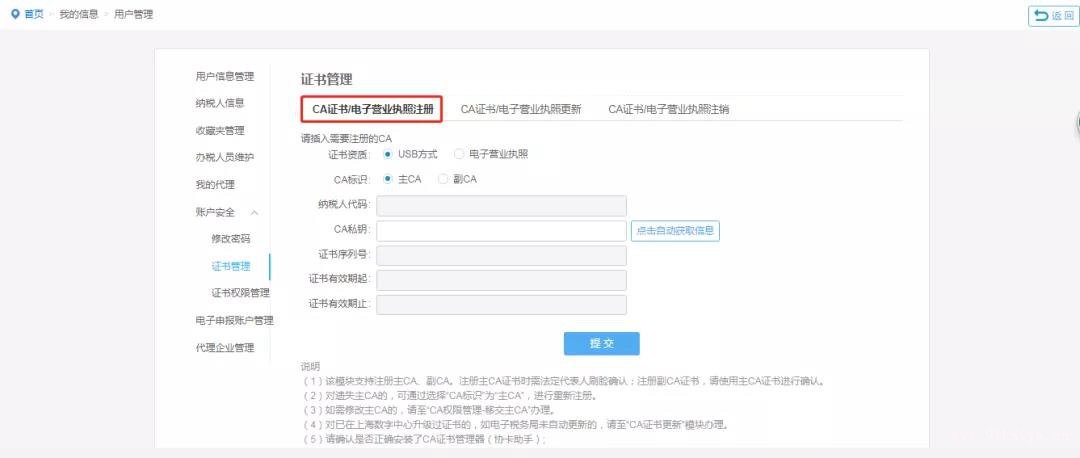 上海電子稅務(wù)局如何注冊電子營業(yè)執(zhí)照 準備工作 首先下載好電子營業(yè)執(zhí)照,然后在上海市數(shù)字證書認證中心官網(wǎng)下載最新版的【協(xié)卡助手】;安裝后在【協(xié)卡助手】客戶端中登錄電子營業(yè)執(zhí)照:點擊“電子營業(yè)執(zhí)照登錄”,在彈出的二維碼中,使用電子營業(yè)執(zhí)照小程序進行掃碼認證登錄。 線上注冊 納稅人在電子稅務(wù)局使用電子營業(yè)執(zhí)照,除了做好上述準備工作外,為確保安全使用,還需要先在電子稅務(wù)局中對電子營業(yè)執(zhí)照進行注冊后才能進行使用。 操作步驟: 登錄電子稅務(wù)局(可使用IA/CA登錄、實名登錄、稅號登錄等多種方式登錄),點擊首頁菜單欄中“我的信息”進入用戶管理,選擇證書管理并切換至“CA證書/電子營業(yè)執(zhí)照注冊”Tab頁。 證書資質(zhì)選擇電子營業(yè)執(zhí)照,在彈出的二維碼中,使用電子營業(yè)執(zhí)照小程序進行掃碼認證。這里特別提醒,要注意根據(jù)實際需要確認主副CA標識。如果選擇了將此電子營業(yè)執(zhí)照作為主CA,后續(xù)將需要企業(yè)法定代表人進行實名刷臉認證;同時電子營業(yè)執(zhí)照有授權(quán)有效期,請務(wù)必確保該授權(quán)有效期與主CA的時效性保持一致,避免注冊為主CA電子營業(yè)執(zhí)照因超過授權(quán)有效期無法使用而造成主CA失效的情況。 掃碼完成后,在手機端的電子營業(yè)執(zhí)照小程序中錄入執(zhí)照密碼并確認,點擊“提交”進行電子營業(yè)執(zhí)照的注冊。 該電子營業(yè)執(zhí)照如需在電子申報客戶端使用,請在電子稅務(wù)局注冊完成后,通過“我的信息—用戶管理—電子申報賬戶管理”模塊中“新增開戶號”辦理。 線上登錄 納稅人完成線上注冊后,就可以使用電子營業(yè)執(zhí)照進行登錄了。打開電子稅務(wù)局登錄模塊,點擊登錄模塊中“IA/CA登錄”選擇“電子營業(yè)執(zhí)照”按鈕。 在彈出的二維碼中,使用電子營業(yè)執(zhí)照小程序進行掃碼認證登錄。點擊“掃一掃”。選擇電子營業(yè)執(zhí)照并輸入密碼,點擊“確認登錄”后,電子稅務(wù)局即可自動登錄。 線上簽名 納稅人使用電子營業(yè)執(zhí)照進行登錄電子稅務(wù)局后,在辦理稅務(wù)事項提交時的CA驗簽環(huán)節(jié),彈出的CA簽名框中選擇“電子營業(yè)執(zhí)照”,請閱讀溫馨提示后,點擊“確定”。在手機端的電子營業(yè)執(zhí)照小程序電子簽名界面錄入執(zhí)照密碼,點擊“確認簽名”。完成簽名,電子稅務(wù)局提示辦理成功。 重要提示 電子營業(yè)執(zhí)照采用密碼技術(shù)生成,在電子稅務(wù)局使用過程中需保持連續(xù)的登錄狀態(tài)以確保數(shù)據(jù)交互的安全性,所以需先使用電子營業(yè)執(zhí)照小程序掃碼登錄,登錄后請務(wù)必保持該小程序為打開狀態(tài)(不要關(guān)閉退出),直至辦理完稅務(wù)事項并簽名提交。 以上是玖邀開業(yè)網(wǎng)小編為您整理的關(guān)于上海電子稅務(wù)局如何注冊電子營業(yè)執(zhí)照的內(nèi)容,希望對您有所幫助。 |
