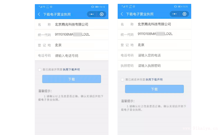 如何申領(lǐng)電子營(yíng)業(yè)執(zhí)照 法定代表人是電子營(yíng)業(yè)執(zhí)照的默認(rèn)領(lǐng)取人。手機(jī)版電子營(yíng)業(yè)執(zhí)照的首次領(lǐng)取只能由法定代表人通過(guò)手機(jī)等移動(dòng)終端完成。法定代表人領(lǐng)取手機(jī)版電子營(yíng)業(yè)執(zhí)照后,可自行或授權(quán)證照管理人員保管、持有、使用電子營(yíng)業(yè)執(zhí)照。法定代表人或者證照管理人員可授權(quán)辦事人持電子營(yíng)業(yè)執(zhí)照辦理相關(guān)的政務(wù)、商務(wù)、公共服務(wù)等業(yè)務(wù)。證照管理員和辦事人經(jīng)過(guò)授權(quán)后可下載電子營(yíng)業(yè)執(zhí)照并使用。 具體申領(lǐng)流程主要分為: 第一步:進(jìn)行實(shí)名認(rèn)證,只有通過(guò)實(shí)名認(rèn)證才可以下載執(zhí)照;如果實(shí)名認(rèn)證不通過(guò),需要到當(dāng)?shù)氐氖袌?chǎng)監(jiān)督部門(mén)下載電子營(yíng)業(yè)執(zhí)照。實(shí)名認(rèn)證方式有: 1)微信小程序:先輸入微信支付密碼,獲取微信賬號(hào)的實(shí)名信息,包括姓名和證件號(hào)碼,再進(jìn)行人臉識(shí)別,完成實(shí)名認(rèn)證。 2)支付寶小程序:授權(quán)獲取支付寶賬號(hào)的實(shí)名信息,包括姓名和證件號(hào)碼,再授權(quán)采集人臉信息進(jìn)行實(shí)名認(rèn)證。 第二步:通過(guò)實(shí)名認(rèn)證后,選擇企業(yè)所在的登記地,顯示該登記地的所有可下載和已下載的執(zhí)照記錄,在“可下載執(zhí)照記錄”中選擇企業(yè)名稱,下載該企業(yè)的電子營(yíng)業(yè)執(zhí)照。 第三步:下載電子營(yíng)業(yè)執(zhí)照前,需要閱讀并同意《執(zhí)照下載聲明》。如果本APP上修改過(guò)密碼,下載時(shí)需要輸入修改后的密碼。 第四步:執(zhí)照下載成功后,可以繼續(xù)下載其他的執(zhí)照;也可以修改本手機(jī)當(dāng)前APP已經(jīng)下載的所有執(zhí)照的密碼,或者返回主頁(yè)進(jìn)行其他的操作。 以上是玖邀開(kāi)業(yè)網(wǎng)小編為您整理的關(guān)于如何申領(lǐng)電子營(yíng)業(yè)執(zhí)照的內(nèi)容,希望對(duì)您有所幫助。 |