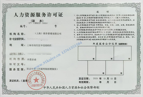 什么是人力資源服務(wù)許可證依據(jù)《人力資源市場暫行條例》 第十八條經(jīng)營性人力資源服務(wù)機(jī)構(gòu)從事職業(yè)中介活動的,應(yīng)當(dāng)依法向人力資源社會保障行政部門申請行政許可,取得人力資源服務(wù)許可證。 《人力資源服務(wù)許可證》由市(區(qū))縣級機(jī)關(guān)受理,是主要用于規(guī)范人力資源服務(wù)和人力資源職介行業(yè)。 人力資源服務(wù)許可證有什么用1、人才中介(獵頭): 人才供求信息的收集、整理、儲存、發(fā)布和咨詢服務(wù)、人才信息網(wǎng)絡(luò)服務(wù)、人才推薦、人才招聘、人才培訓(xùn)、人才測評、法規(guī)、規(guī)章規(guī)定的其他有關(guān)業(yè)務(wù)。 2、職業(yè)中介: 為勞動者介紹用人單位、為用人單位和居民家庭推薦勞動者、開展職業(yè)指導(dǎo)、人力資源管理咨詢服務(wù)、收集和發(fā)布職業(yè)供求信息、根據(jù)國家有關(guān)規(guī)定從事互聯(lián)網(wǎng)職業(yè)信息服務(wù)、組織職業(yè)招聘洽談會、經(jīng)勞動保障行政部門核準(zhǔn)的其他服務(wù)項(xiàng)目。 人力資源許可證適用范圍依據(jù)《人力資源市場暫行條例》第十八條經(jīng)營性人力資源服務(wù)機(jī)構(gòu)從事職業(yè)中介活動的,應(yīng)當(dāng)依法向人力資源社會保障行政部門申請行政許可,取得人力資源服務(wù)許可證。 經(jīng)營性人力資源服務(wù)機(jī)構(gòu)開展人力資源供求信息的收集和發(fā)布、就業(yè)和創(chuàng)業(yè)指導(dǎo)、人力資源管理咨詢、人力資源測評、人力資源培訓(xùn)、承接人力資源服務(wù)外包等人力資源服務(wù)業(yè)務(wù)的,應(yīng)當(dāng)自開展業(yè)務(wù)之日起15日內(nèi)向人力資源社會保障行政部門備案。 經(jīng)營性人力資源服務(wù)機(jī)構(gòu)從事勞務(wù)派遣業(yè)務(wù)的,執(zhí)行國家有關(guān)勞務(wù)派遣的規(guī)定。 人力資源許可證申請流程1、申請準(zhǔn)備。首先要準(zhǔn)備好人力資源服務(wù)行政許可申請表;營業(yè)執(zhí)照副本或名稱預(yù)先核準(zhǔn)通知書;法定代表人身份證明材料;專職工作人員的身份證、學(xué)歷證和具有從事人力資源服務(wù)的相關(guān)職業(yè)資格、從業(yè)人員培訓(xùn)、人力資源等相關(guān)專業(yè)知識、人力資源管理相關(guān)工作經(jīng)歷的證書或情況說明;公司章程和管理制度;辦公及服務(wù)場所所有權(quán)或使用權(quán)證明材料;固定資產(chǎn)、可靠經(jīng)費(fèi)來源證明材料。 2、申請人申請。申請準(zhǔn)備完備后,申請人向營業(yè)執(zhí)照審批所在地人力資源和社會保障行政部門提交申請材料。 3、行政審批部門受理。行政審批部門對申請材料齊全、符合法定形式,或者按照要求提交全部補(bǔ)正申請材料的,審批部門出具《受理通知書》;對不屬于許可范疇或不屬于本機(jī)關(guān)職權(quán)范圍的,不予受理,并告知申請人向有關(guān)部門申請;對材料不齊或者不符合法定形式的,退回材料,發(fā)出一次性補(bǔ)正告知書。 4、行政審批部門審核。行政審批部門按照行政許可條件對申請人提交的材料通過書面、現(xiàn)場勘察等方式在規(guī)定時(shí)間內(nèi)進(jìn)行審核。審核中發(fā)現(xiàn)與提交材料不符的,做出不予行政許可的書面決定,說明理由,并告知申請人依法申請復(fù)議、提起行政訴訟的權(quán)利。 5、行政審批部門作出決定。行政審批部門應(yīng)當(dāng)自受理經(jīng)營性人力資源服務(wù)機(jī)構(gòu)從事職業(yè)中介活動的申請之日起20日內(nèi)依法作出行政許可決定,20日內(nèi)不能作出決定的,經(jīng)本行政機(jī)關(guān)負(fù)責(zé)人批準(zhǔn),可延長10日,并且當(dāng)將延長期限的理由告之申請人。作出準(zhǔn)予行政許可決定,向申請人頒發(fā)人力資源服務(wù)許可證,作出給予行政許可書面決定的并說明理由。 6、行政審批部門文書送達(dá)。人力資源服務(wù)許可證在批準(zhǔn)后10日內(nèi)送達(dá)申請人。 7、行政審批部門公告。凡經(jīng)行政許可從事職業(yè)中介活動的人力資源服務(wù)機(jī)構(gòu),其許可決定應(yīng)當(dāng)在所在地本部門網(wǎng)站等政務(wù)服務(wù)平臺上進(jìn)行公示告知。 人力資源許可證申請條件經(jīng)營性機(jī)構(gòu)從事職業(yè)中介活動的,應(yīng)依法向市或區(qū)人力社保局申請行政許可,取得《人力資源服務(wù)許可證》。 經(jīng)營性人力資源服務(wù)機(jī)構(gòu)申請職業(yè)中介活動行政許可應(yīng)符合六項(xiàng)條件:依法登記取得法人資格;有明確的章程和管理制度;有與服務(wù)范圍相適應(yīng)的使用面積不少于50平方米的固定場所;有開展業(yè)務(wù)必備的辦公設(shè)施和資金;有不少于5名具備相應(yīng)職業(yè)資質(zhì)的符合規(guī)定的專職工作人員;申請組織開展現(xiàn)場招聘會,有不少于10名具備相應(yīng)職業(yè)資質(zhì)的符合規(guī)定的專職工作人員。 此外,通過互聯(lián)網(wǎng)開展職業(yè)中介活動的,還應(yīng)符合國家和我市有關(guān)網(wǎng)絡(luò)安全、互聯(lián)網(wǎng)信息服務(wù)管理的規(guī)定。 經(jīng)營性人力資源服務(wù)機(jī)構(gòu)提交行政許可申請材料后,市或區(qū)人力社保局將依法作出受理或不予受理的書面決定。受理