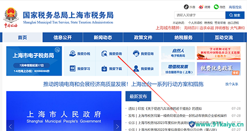 1、登錄所在省、市的稅務(wù)局官網(wǎng),點擊我要查詢下面以上海市為教程(如圖)