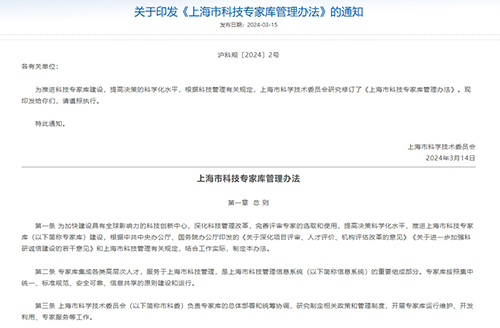第一章 總 則 第一條 為加快建設(shè)具有全球影響力的科技創(chuàng)新中心,深化科技管理改革,完善評審專家的選取和使用,提高決策的科學(xué)化水平,推進(jìn)上海市科技專家?guī)欤ㄒ韵潞喎Q“專家?guī)臁保┙ㄔO(shè),按照《中共中央辦公廳 國務(wù)院辦公廳關(guān)于深化項目評審、人才評價、機構(gòu)評估改革的意見》(中辦發(fā)〔2018〕37號)的要求,制定本辦法。 第二條 專家?guī)旒筛黝惛邔哟稳瞬,服?wù)于上海市科技管理,是上海市科技管理信息系統(tǒng)的重要組成部分。通過專家?guī)旖ㄔO(shè),積極鼓勵引導(dǎo)國內(nèi)外專家服務(wù)上?萍紕(chuàng)新中心建設(shè)。 第三條 專家?guī)彀凑占薪y(tǒng)一、標(biāo)準(zhǔn)規(guī)范、安全可靠、信息共享的原則建設(shè)和運行。 第四條 上海市科學(xué)技術(shù)委員會(以下簡稱“市科委”)負(fù)責(zé)專家?guī)斓目傮w部署和統(tǒng)籌協(xié)調(diào),研究制定相關(guān)政策和管理制度,開展專家?guī)爝\行維護(hù)、開發(fā)利用、專家服務(wù)等相關(guān)工作。 第五條 市科委在科技管理中所需專家,應(yīng)當(dāng)按照本辦法要求從專家?guī)熘羞x取使用。 第二章 專家?guī)旖ㄔO(shè)與管理 第六條 符合以下條件的專家可申請入庫: (一)研究開發(fā)類專家應(yīng)當(dāng)具有副高級(含)以上職稱,或作為項目(課題)負(fù)責(zé)人承擔(dān)過國家或省部級科技計劃項目(課題),或是國家或省部級科技獎勵獲得者。研究成果突出的優(yōu)秀青年學(xué)者、港澳臺專家、外籍專家,科技型上市公司、國家高新技術(shù)企業(yè)、技術(shù)先進(jìn)型服務(wù)企業(yè)、外資研發(fā)中心的技術(shù)骨干,可適當(dāng)放寬條件。 (二)產(chǎn)業(yè)管理類專家應(yīng)當(dāng)是科技型上市公司、國家高新技術(shù)企業(yè)、技術(shù)先進(jìn)型服務(wù)企業(yè)、國家大學(xué)科技園、國家科技企業(yè)孵化器、全國性或全市性行業(yè)協(xié)會學(xué)會、天使投資或創(chuàng)業(yè)投資機構(gòu)的高級管理人員。具有豐富企業(yè)管理或創(chuàng)業(yè)實踐經(jīng)驗,或?qū)Τ晒D(zhuǎn)化、產(chǎn)業(yè)發(fā)展有突出貢獻(xiàn)的人員,可適當(dāng)放寬條件。 (三)財務(wù)審計類專家應(yīng)當(dāng)是熟悉科技經(jīng)費管理的高級會計師、高級審計師、高級經(jīng)濟(jì)師、注冊會計師及企事業(yè)單位或其它社會組織中從事科研經(jīng)費管理工作的中高級管理人員。 (四)其他專家包括熟悉科技管理的具有副高級(含)以上職稱的法學(xué)專家、律師事務(wù)所合伙人,具有豐富科技行政管理或決策咨詢經(jīng)驗的人員,銀行、證券公司、保險公司等金融機構(gòu)的高級管理人員,具有豐富科普工作經(jīng)驗或?qū)破帐聵I(yè)有突出貢獻(xiàn)的人員等。 第七條 專家入庫主要采用本人自薦、單位推薦的方式,專家本人可在線申請進(jìn)入專家?guī),?jīng)所在單位審核后向市科委推薦。市科委根據(jù)科技管理實際需要,可定向邀請專家入庫。 擬入庫專家名單在市科委門戶網(wǎng)站公示5個工作日。任何單位或個人對公示的專家人選有異議的,可在公示期內(nèi)實名以書面形式向市科委提出,市科委對公示期間有異議的專家開展調(diào)查,確保入庫專家符合標(biāo)準(zhǔn)。經(jīng)公示無異議或者異議不成立的,正式進(jìn)入專家?guī)臁?/div> 第八條 專家?guī)鞂嵭行畔討B(tài)更新機制,專家應(yīng)當(dāng)每年進(jìn)行信息確認(rèn),信息發(fā)生變化的,專家應(yīng)當(dāng)及時在線更新信息。 專家連續(xù)兩年未對本人信息進(jìn)行確認(rèn)或更新的,專家資格將被凍結(jié)。專家信息經(jīng)確認(rèn)或更新,并經(jīng)所在單位審核后,可解除凍結(jié)狀態(tài)。 第九條 專家本人可申請退出專家?guī)臁?/div> 第十條 有下列情形之一的專家,予以出庫: (一)違反有關(guān)法律規(guī)定,危害國家利益或重大社會公共利益; (二)違反科學(xué)道德或品行不端,嚴(yán)重影響專家群體聲譽; 三)違反科技活動規(guī)定,為本人或他人謀取不正當(dāng)利益。 因以上情形出庫的人員,市科委按程序?qū)⑵浼{入誠信記錄。 第十一條 推薦單位應(yīng)當(dāng)認(rèn)真履行對專家信息的審核把關(guān)責(zé)任,確保專家信息真實、可靠;獲知專家出現(xiàn)本辦法第十條所列情形的,應(yīng)當(dāng)及時報告市科委。 第三章 專家選取與使用 第十二條 選取專家和使用專家的崗位,應(yīng)當(dāng)分離。 第十三條 從專家?guī)熘羞x取專家,應(yīng)當(dāng)遵循以下原則: (一)隨機原則。根據(jù)科技活動特點,合理確定專家選取條件和專家組組成原則,由系統(tǒng)隨機產(chǎn)生候選專家。 (二)同行評議原則。專家組中的研究開發(fā)類專家,應(yīng)當(dāng)選取活躍在科研一線、在專業(yè)水平和知識結(jié)構(gòu)上與科技管理要求相符的專家;與產(chǎn)業(yè)應(yīng)用結(jié)合緊密的,應(yīng)當(dāng)選取活躍在生產(chǎn)一線的專家參與。 (三)輪換原則。避免同一專家反復(fù)多次參加各類科技活動,保障專家科研時間。 (四)誠信原則。處于失信約束期的專家,不得選取使用。 (五)回避原則。專家是被評審對象或已知與被評審對象有利害關(guān)系、同期申報項目與被評審項目屬于同一申報指南、在評審對象合