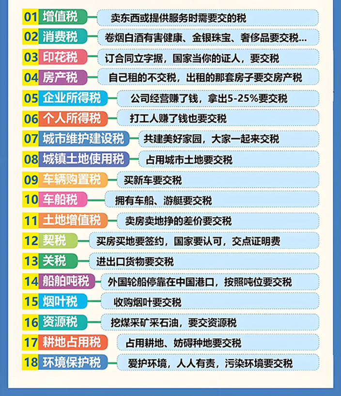 稅種的分類(lèi)1、按征稅對(duì)象不同,可以劃分為流轉(zhuǎn)稅、所得稅、資源稅和財(cái)產(chǎn)行為稅。流轉(zhuǎn)稅,是指在生產(chǎn)、流通和服務(wù)領(lǐng)域中,以銷(xiāo)售商品或提供勞務(wù)而取得的銷(xiāo)售收入額或營(yíng)業(yè)收入額為征稅對(duì)象的稅收,主要包括增值稅、消費(fèi)稅、車(chē)輛購(gòu)置稅、關(guān)稅。 所得稅,是指以各種所得額為征稅對(duì)象的稅收,主要包括兩大稅種,即個(gè)人所得稅和企業(yè)所得稅。 資源稅,是以各種應(yīng)稅自然資源為征稅對(duì)象、為了調(diào)節(jié)資源級(jí)差收入并體現(xiàn)國(guó)有資源有償使用而征收的一種稅。 財(cái)產(chǎn)行為稅,是指以納稅人所擁有或支配的財(cái)產(chǎn)數(shù)量或財(cái)產(chǎn)價(jià)值為征稅對(duì)象,或者為了某些特定目的以某些特定行為為征稅對(duì)象的稅收。在我國(guó)現(xiàn)行稅制體系中,屬于財(cái)行行為稅的有契稅、土地增值稅、印花稅、房產(chǎn)稅、城市維護(hù)建設(shè)稅、城鎮(zhèn)土地使用稅、車(chē)船稅等。 2、按計(jì)稅依據(jù)不同,可以分為從量稅和從價(jià)稅。從量稅是指以征稅對(duì)象的自然計(jì)量單位(重量、面積、件數(shù)等)為依據(jù),按固定稅額計(jì)征的稅收。從量稅實(shí)行定額稅率,具有計(jì)算簡(jiǎn)便等優(yōu)點(diǎn),如我國(guó)現(xiàn)行的耕地占用稅、車(chē)船稅和城鎮(zhèn)土地使用稅。 從價(jià)稅是指以征稅對(duì)象的價(jià)值量為依據(jù),按一定比例計(jì)征的稅收。從價(jià)稅實(shí)行比例稅率和累進(jìn)稅率,稅收負(fù)擔(dān)比較合理,如我國(guó)現(xiàn)行的增值稅、關(guān)稅和所得稅等。 3、按稅收與價(jià)格關(guān)系不同,可分為價(jià)內(nèi)稅和價(jià)外稅。價(jià)內(nèi)稅是指稅款包含在應(yīng)稅商品價(jià)格內(nèi),作為商品價(jià)格組成部分的稅收,如消費(fèi)稅、關(guān)稅等。 價(jià)外稅是指稅款獨(dú)立于商品價(jià)格之外,不作為商品價(jià)格的組成部分,如增值稅。 4、按稅收管理和支配權(quán)限的歸屬不同,稅收可分為中央稅、地方稅、中央與地方共享稅。中央稅是指由中央政府征收和管理使用或由地方政府征收后全部劃歸中央政府所有并支配使用的稅收,如關(guān)稅。 地方稅是指由地方政府征收和管理使用的稅收,如財(cái)產(chǎn)行為稅。地方稅一般收入穩(wěn)定,并與地方經(jīng)濟(jì)利益關(guān)系密切。 中央與地方共享稅是指稅收的管理權(quán)和使用權(quán)屬中央政府和地方政府共同擁有的稅收,如增值稅、資源稅等。 5、按稅收負(fù)擔(dān)是否易于轉(zhuǎn)嫁,可分為直接稅與間接稅。直接稅是指稅負(fù)不易轉(zhuǎn)嫁,納稅主體直接承擔(dān)稅負(fù)的稅收,即納稅人與負(fù)稅人為同一人,如企業(yè)所得稅。 間接稅是指納稅主體通過(guò)一定方式,將繳納稅收的部分或全部轉(zhuǎn)嫁給他人負(fù)擔(dān)的稅收,如增值稅、關(guān)稅等。 以上是玖邀開(kāi)業(yè)小編整理的稅種的分類(lèi)(常見(jiàn)的稅種有哪些)相關(guān)知識(shí),相信大家通過(guò)以上知識(shí)都已經(jīng)對(duì)此有了大致的了解,如果您還遇到什么問(wèn)題,歡迎咨詢(xún)?cè)诰(xiàn)客服。 |