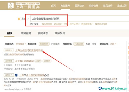 第二步搜索“上海企業(yè)登記檔案查閱系統(tǒng)”