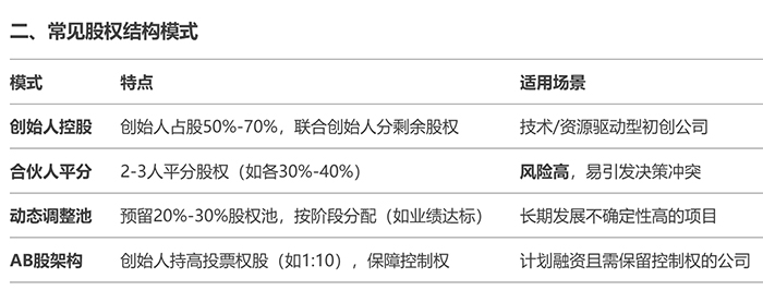 初創(chuàng)公司的股權(quán)結(jié)構(gòu)設(shè)計是公司發(fā)展的基石,直接影響團隊穩(wěn)定性、決策效率和融資能力。合理的股權(quán)分配需要平衡創(chuàng)始人、合伙人、員工和投資者的利益,以下是一份系統(tǒng)性的指南: 一、股權(quán)分配核心原則 1. 公平與激勵 - 根據(jù)貢獻(資金、技術(shù)、資源、時間)分配,避免純按出資比例分配。 - 預留期權(quán)池(10%-20%)用于未來人才激勵。 2. 控制權(quán)集中 - 核心創(chuàng)始人需保持足夠投票權(quán)(建議≥67%或51%),避免平均分配導致的決策僵局。 3. 動態(tài)調(diào)整機制 - 設(shè)置股權(quán)兌現(xiàn)條款(Vesting),如4年兌現(xiàn)期,離職未兌現(xiàn)部分回購。 - 預留股權(quán)池應對后續(xù)融資稀釋。 二、常見股權(quán)結(jié)構(gòu)模式 三、股權(quán)分配比例建議 1. 早期團隊分配 - 創(chuàng)始人:50%-70%(需承擔主要責任與風險) - 聯(lián)合創(chuàng)始人:各10%-20%(根據(jù)資源/技術(shù)價值) - 期權(quán)池:10%-20%(員工激勵) 2. 資源型合伙人 - 以業(yè)績對賭代替直接給股(如資源到位后兌現(xiàn)5%-10%)。 3. 避免陷阱 - 兼職合伙人:不建議給股,可轉(zhuǎn)化為顧問或績效獎勵。 - 早期投資人:天使輪稀釋建議≤20%,避免后續(xù)融資空間不足。 四、關(guān)鍵協(xié)議與機制 1. 股東協(xié)議 - 明確決策權(quán)、分紅規(guī)則、股權(quán)轉(zhuǎn)讓限制(如優(yōu)先購買權(quán))。 2. 退出機制 - 離職回購條款:約定未兌現(xiàn)股權(quán)以成本價/凈資產(chǎn)回購。 - 離婚/繼承風險:提前簽署配偶同意書,限制股權(quán)轉(zhuǎn)移。 3. 控制權(quán)保障 - 一致行動人協(xié)議:聯(lián)合創(chuàng)始人投票權(quán)委托給核心創(chuàng)始人。 - 董事會席位:創(chuàng)始人占多數(shù),避免投資人過度干預。 五、股權(quán)結(jié)構(gòu)案例 案例1:科技型初創(chuàng)公司 - 創(chuàng)始人A(技術(shù)):60% - 聯(lián)合創(chuàng)始人B(運營):20% - 期權(quán)池:15% - 天使投資人:5% - 控制權(quán):創(chuàng)始人A通過AB股持有70%投票權(quán)。 案例2:消費品初創(chuàng)公司 - 創(chuàng)始人:40%(出資+全職) - 資源合伙人:15%(供應鏈資源,分3年兌現(xiàn)) - 技術(shù)合伙人:15% - 期權(quán)池:20% - 早期融資:10% 六、常見錯誤與規(guī)避 1. 過早分配:未預留足夠期權(quán)池,導致后期人才激勵困難。 2. 資源承諾股:資源未兌現(xiàn)即給股,建議分階段兌現(xiàn)。 3. 平均分配:3人各33%股權(quán),導致融資時投資人質(zhì)疑決策效率。 總結(jié) 股權(quán)結(jié)構(gòu)需在早期明確,結(jié)合公司戰(zhàn)略、團隊角色和融資規(guī)劃動態(tài)調(diào)整。建議通過以下步驟操作: 1. 評估團隊成員的長期價值和貢獻; 2. 簽訂書面協(xié)議,明確退出機制; 3. 預留至少10%-20%期權(quán)池; 4. 引入專業(yè)法律顧問審核結(jié)構(gòu)。 |