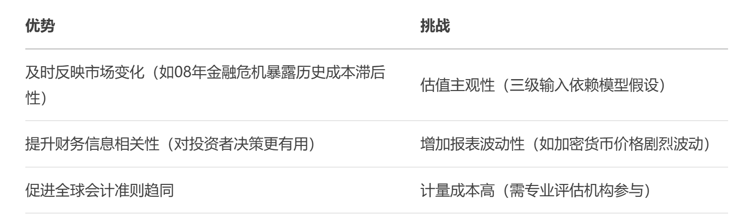 公允價值(Fair Value)是會計和金融領(lǐng)域的重要概念,指在公平交易中,熟悉情況的交易雙方自愿進行資產(chǎn)交換或負債清償?shù)慕痤~。其核心在于反映市場參與者在當(dāng)前條件下對資產(chǎn)或負債價值的合理評估。 主要特征 1.自愿性:交易雙方無強制,基于自主決策。 例:賣方非急于出售,買方非被迫購買。* 2.市場參與者視角:以獨立第三方的理性判斷為基礎(chǔ),而非特定企業(yè)的個體情況。 3.公平交易環(huán)境:排除關(guān)聯(lián)交易等特殊因素影響。 確定方法(按輸入值層次) 根據(jù)IFRS 13和GAAP,分為三個層級: 1.一級輸入值:活躍市場的公開報價。 例:上市公司股票收盤價。* 2.二級輸入值:直接或間接可觀察的市場數(shù)據(jù)。 例:相似房地產(chǎn)的近期成交價、利率衍生品的收益率曲線。* 3.三級輸入值:不可觀察的模型估算。 例:非上市公司股權(quán)采用現(xiàn)金流折現(xiàn)法估值。* 核心應(yīng)用場景 -金融工具:交易性金融資產(chǎn)、衍生品按公允價值計量,損益直接入利潤表。 -企業(yè)并購:收購時按公允價值重新評估被購方資產(chǎn)/負債。 -資產(chǎn)減值測試:比較賬面價值與可收回金額(公允價值減處置費用)。 -投資性房地產(chǎn):可選公允價值模式,波動計入當(dāng)期損益。 對比優(yōu)勢與挑戰(zhàn) 典型案例 -特斯拉比特幣持倉:按季度末市場價格調(diào)整賬面價值,2021年Q1確認1.01億美元收益。 -并購商譽計算:A公司收購B公司時,B公司專利組合按未來收益折現(xiàn)估值,屬于三級輸入。 發(fā)展趨勢 2023年IASB修訂《國際估值準則》,強調(diào)在非活躍市場中需加強信息披露,要求詳細披露三級輸入值的敏感性分析。隨著ESG投資興起,碳排放權(quán)等新型資產(chǎn)的公允價值計量成為前沿議題。 公允價值通過動態(tài)反映資產(chǎn)真實價值,成為現(xiàn)代財務(wù)報告的基石,但其有效應(yīng)用依賴于完善的市場數(shù)據(jù)和專業(yè)的估值技術(shù)。 |