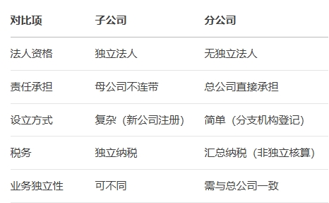 子公司與分公司在法律地位、責任承擔、設立方式等方面存在顯著差異,以下是主要區(qū)別點: 1. 法律地位不同 - 子公司 - 具有獨立法人資格(如有限責任公司或股份有限公司),擁有自己的名稱、章程和財產。 - 獨立承擔民事責任,母公司僅以出資額為限承擔責任。 - 分公司 - 不具備獨立法人資格,是總公司的分支機構(如“XX公司XX分公司”)。 - 所有法律責任最終由總公司承擔。 2. 設立方式不同 - 子公司 - 需按新公司注冊流程設立(如提交公司章程、出資證明等),程序較復雜。 - 分公司 - 僅需辦理分支機構登記,領取營業(yè)執(zhí)照,程序相對簡單。 3. 控制方式不同 - 子公司 - 母公司通過股權或協(xié)議控制,但子公司有獨立經營管理權。 - 分公司 - 完全受總公司控制,人事、業(yè)務等由總公司直接管理。 4. 債務責任 - 子公司 - 獨立負債,母公司不承擔連帶責任(除非存在濫用控制權)。 - 分公司 - 債務由總公司直接承擔。 5. 稅務處理 - 子公司 - 獨立納稅,可能與母公司存在關聯(lián)交易稅務問題。 - 若跨地區(qū),需在當地繳納企業(yè)所得稅。 - 分公司 - 通常匯總到總公司納稅(非獨立核算),但增值稅等需在經營地繳納。 - 跨地區(qū)設立的分公司可能需按稅法規(guī)定分攤稅款。 6. 業(yè)務范圍 - 子公司 - 可與母公司業(yè)務不同,獨立性高。 - 分公司 - 必須在總公司經營范圍內開展業(yè)務。 7. 適用場景 - 子公司 - 需要隔離風險(如新業(yè)務、高風險項目)。 - 計劃引入外部投資者或獨立上市。 - 分公司 - 需快速擴展業(yè)務且統(tǒng)一管理(如銀行分行、連鎖門店)。 - 短期內無需獨立法人資格。 |