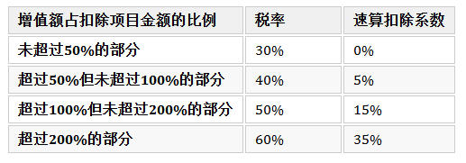 | 增值額占扣除項目金額的比例 |