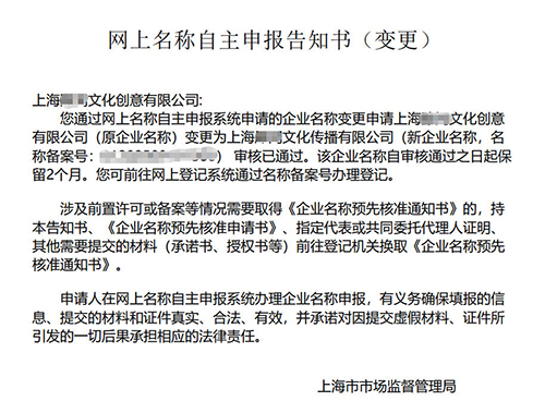 上海公司更名網(wǎng)上申請(qǐng)流程及步驟如下: 1.名稱自主申報(bào) · 登錄[鏈接],點(diǎn)擊“名稱自主申報(bào)”,選擇“自主申報(bào)企業(yè)名稱”和“名稱變更”,輸入擬變更的公司名稱,通過系統(tǒng)核名。若名稱通過,獲取企業(yè)名稱備案編號(hào)。 2.登錄系統(tǒng) · 使用擬變更企業(yè)的電子營(yíng)業(yè)執(zhí)照,通過微信、支付寶或百度小程序掃碼登錄“上海企業(yè)登記在線”。 3.選擇變更事項(xiàng) · 在系統(tǒng)中選擇“變更(備案)事項(xiàng)”,勾選“名稱”變更,并根據(jù)實(shí)際情況選擇是否同步變更其他關(guān)聯(lián)事項(xiàng)(如經(jīng)營(yíng)范圍、注冊(cè)資本等)。 4.填報(bào)變更信息 · 在“變更名稱”頁(yè)面錄入已獲取的企業(yè)名稱備案編號(hào),系統(tǒng)自動(dòng)匹配新名稱。同時(shí),按提示填寫其他變更信息(如經(jīng)營(yíng)范圍、注冊(cè)資本等)。 5.選擇辦理方式 · 系統(tǒng)自動(dòng)判斷是否具備全程網(wǎng)辦條件。若符合條件,可選擇“在線辦理”;若不符合,需選擇“線下辦理”(需后續(xù)到現(xiàn)場(chǎng)提交材料)。 6.上傳材料 · 根據(jù)系統(tǒng)提示,上傳相關(guān)材料(如股東會(huì)決議、章程修正案等)。若使用“智慧文書”,系統(tǒng)將自動(dòng)生成部分材料;若使用“自備文書”,需自行準(zhǔn)備并上傳。 7.提交預(yù)審 · 預(yù)覽材料無誤后,點(diǎn)擊“提交預(yù)審”,等待登記機(jī)關(guān)審核。系統(tǒng)將通過短信通知預(yù)審進(jìn)度。 8.電子簽名(若選擇在線辦理) · 預(yù)審?fù)ㄟ^后,組織相關(guān)人員(如法定代表人、股東等)通過系統(tǒng)完成電子簽名。 9.領(lǐng)取新營(yíng)業(yè)執(zhí)照 · 審核通過后,登記機(jī)關(guān)將核發(fā)電子營(yíng)業(yè)執(zhí)照。若需紙質(zhì)營(yíng)業(yè)執(zhí)照,可選擇現(xiàn)場(chǎng)領(lǐng)取或寄遞服務(wù)。 注意事項(xiàng): · 變更名稱前需確保新名稱符合法律法規(guī)和工商登記要求,避免與已注冊(cè)企業(yè)重名。 · 若涉及減資、股權(quán)轉(zhuǎn)讓等復(fù)雜事項(xiàng),需提前準(zhǔn)備相關(guān)證明材料。 · 全程網(wǎng)辦需確保相關(guān)人員持有有效的電子營(yíng)業(yè)執(zhí)照或身份證,以便完成電子簽名。建議在操作前仔細(xì)閱讀系統(tǒng)提示和相關(guān)指南,確保信息準(zhǔn)確無誤。 |